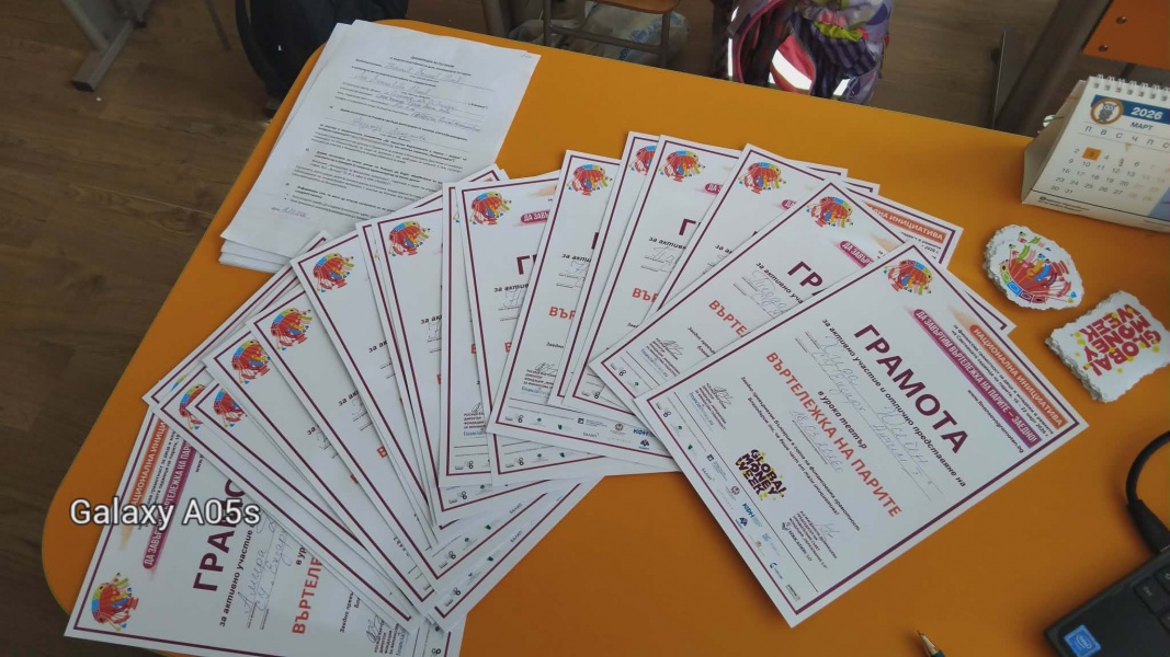 Имахме притеснения относно представлението, но децата се представиха повече от блестящо. С артистичност изиграха ролите си, а това предизвика бурен смях от публиката на отделни реплики. Аплодисментите накрая бяха бурни и напълно заслужени – „Въртележка на парите“ не просто забавлява, а те грабва, разклаща те и те кара да се усмихнеш… Получихме благодарности и поздравления от родителите и гостите и това ни показа, че сме на прав път. В еуфорията накрая забравихме да връчим грамотите пред родителите, но им ги дадохме след това. В продължение на три седмици децата се потопиха по-дълбоко в знания за бюджета на едно семейство, сметки, разходи, спестявания и показаха сериозно отношение към целия процес. Горди сме с нашите ученици! Благодарим и на Вас, че ни направихте част от това дело!