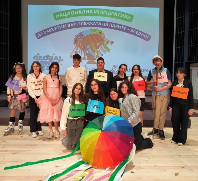 Финансовият спектакъл „Въртележка на парите“ се превърна в истински празник на знанието, таланта и вдъхновението за нашите ученици. Направихме две представления: първото - пред учениците от ЦНСТ – Враца, а второто – на голямата сцена в градската концертна зала. Това беше не просто представление, а незабравимо преживяване – както за младите артисти, които вложиха сърцето си на сцената, така и за публиката, която неусетно „проследи“ пътя на парите и откри важни уроци за избора, отговорността и бъдещето. За да направят преживяването още по-въздействащо, заедно с нас на сцената бяха вокална група „Лъчезарии“ и рок групата на училището „Blast“, които внесоха енергия, ритъм и емоция, превръщайки сцената в истинска въртележка от звуци и чувства.Спектакълът беше подкрепен и от родителите.
